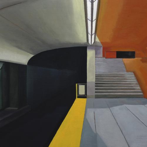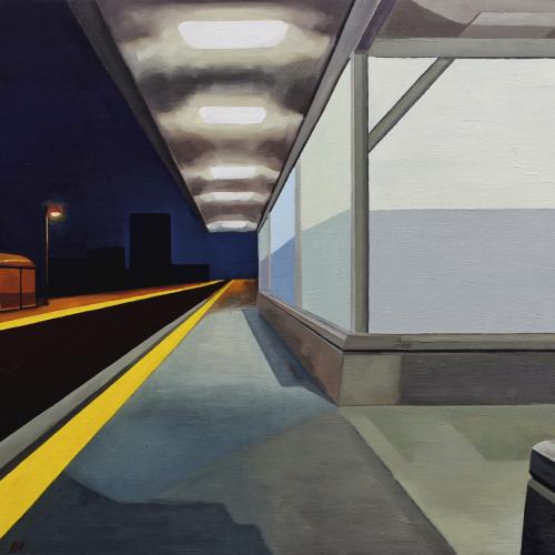 Emerging artist Diogo Pinheiro was born in Lisbon, Portugal and currently lives in Brampton, ON. He graduated from OCAD University in 2015 and received a BFA in Drawing and Painting. He explores ideas of beauty that offer qualities that help his life. His work consists of urbanscapes that are geometrically simplified and colourful through oil paint on wood panels. Diogo is inspired by artists such as Edward Hopper for his ability to create an urban environment that seems to have been frozen still in time.